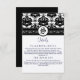 Élégantes Cartes de Réponse RSVP avec Choix de Menu à Monogramme Floral Damask Noir et Blanc. Parfait pour les thèmes de mariage médiéval Renaissance, victorien ou grec