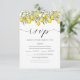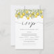 Explorez le romantisme classique avec nos cartes de réponse RSVP conçues pour les mariages côtiers méditerranéens ou grecs botaniques. Orné d'une étonnante branche de citron. Le script de calligraphie minimaliste noir apporte une touche de sophistication à la conception.