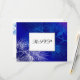 Un modèle de carte RSVP de vacances d'hiver sur mesure avec un élégant motif de pignons et pinecones en bleu et blanc sur un arrière - plan glacé de bleus et de violet. Cliquez sur Customiser pour modifier les polices ou les couleurs, les tailles, et même enregistrer votre conception pour plus tard.