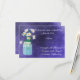 Marguerites blanches dans un bocal de mason teinté bleu.