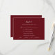 Faites une déclaration avec ces cartes RSVP bordeaux raffinées pour votre mariage. Le design propre offre un grand espace pour les réponses des clients, avec des sections claires pour accepter ou refuser l'invitation, en précisant le nombre d'invités et en sélectionnant les options de repas. Cette élégance sobre ajoute une touche de sophistication à vos préparations mariages. Communiquez toutes les informations nécessaires tout en améliorant l'esthétique générale de votre mariage avec cette papeterie essentielle.