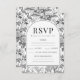 Delicate romantique noir blanc chinoiserie porcelaine boho arche motif floral réponse mariage classique cartes RSVP avec mariée et marié monogramme sur le dos.