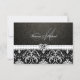 Cartes RSVP Elegant Metallic Silver Mariage damassé. Avec un monogramme gris foncé et un coeur diamant au centre. L'Arrière - plan présente un motif damassé vintage noir et argent. Invitations Stickers Silver et Black Mariage damassé Magnet Réservez la date Cartes de Remerciements Table Cartes