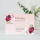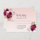 Une carte RSVP élégante et romantique pour un mariage avec des modèles pour répondre par date et nom. Un doux dégradé d'or rose, arrière - plan sombre. Décoré de fleurs couleur eau rose rose et violet foncé et bordeaux. Le titre Kindly Reply est écrit avec un script de style à la main moderne. Retour : Dégradé d'or Rose, floraux et modèles pour vos noms et la date du mariage.