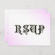 Cartes RSVP personnalisées avec l'art vintage de la glissière en verre de Cendrillon sur un coussin rose et RSVP sur le devant en lettres anciennes. Cliquez sur Customiser pour modifier les polices, les tailles d'invitation, télécharger votre photo, modifier les couleurs des arrière - plans, même enregistrer votre conception pour plus tard.