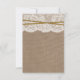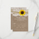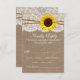 La collection de tournesol rustique est un design époustouflant avec un bel arrière - plan rustique effet burlap avec un cadre romantique vintage effet dentelle blanche fini avec un superbe tournesol et ficelle. Ces cartes RSVP peuvent être personnalisées pour votre occasion spéciale et feraient les cartes d'insertion parfaites pour un mariage, douche nuptiale, fête de fiançailles, fête d'anniversaire et bien plus encore. Les éléments mariages correspondants se trouvent dans la collection.