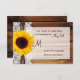 Cette carte de réponse RSVP rustique faire-part de mariage est parfaite pour tous les mariages campagnards. Il est orné d'un arrière - plan rustique imprimé en bois de grange avec de la dentelle imprimée et un ruban de ficelle sur le côté avec un tournesol jaune vif. Parfait pour un mariage de campagne ou de grange. Ajoutez simplement votre date RSVP à la carte. Le bois, la ficelle et la dentelle ne sont que des imprimés. Ce n'est pas de la dentelle, ni de la ficelle. Si vous devez modifier la taille ou la police du texte, vous pouvez utiliser le bouton "Customiser" pour déplacer les choses, redimensionner le texte et le customiser complètement. Sinon, si vous aimez la mise en page et la police, entrez simplement les détails de votre mariage dans les zones modèles. Cette carte RSVP correspond à ces invitations de mariage :