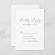 Cette délicate calligraphie argentée simple carte RSVP est parfaite pour un mariage moderne. Le design minimaliste romantique présente une belle et élégante typographie gris argenté sur un arrière - plan blanc au look épuré et simple.