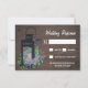 Cartes RSVP Succulentes Rustic Wood Lantern - présente un ancien arrière - plan en bois de grange avec une lanterne noire remplie de succulents aquarelle et de fleurs sauvages. Voir les produits de conception correspondants trouvés dans la collection sur cette page.