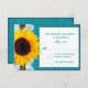 Cette carte de réponse RSVP mariage rustique est parfaite pour tout mariage campagnard. Il présente un arrière - plan bleu aqua turquoise avec dentelle imprimée et un ruban de ficelle sur le côté avec un tournesol jaune vif. Parfait pour un mariage de campagne ou de grange. Ajoutez simplement votre date RSVP à la carte. La ficelle et la dentelle ne sont que des dessins imprimés. Ce n'est pas de la dentelle ou de la ficelle. Éléments correspondants : Si vous devez modifier la taille ou la police du texte, vous pouvez utiliser le bouton "Customiser" pour déplacer les éléments, redimensionner le texte et le customiser complètement. Sinon, si vous aimez la disposition et la police comment il est, il suffit d'entrer vos détails mariages dans les points modèles. mariage campagnard cartes rsvp, cartes rsvp mariage tournesol, cartes rsvp tournesol turquoise, tournesol et dentelle, aqua, turquoise