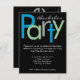 Invitation de fête d'enterrement de vie de garçon élégante, ou personnalisez-la pour n'importe quelle occasion. Lettres de style bloc amusantes et gaies en vert, bleu et gris sur fond noir. Design contemporain élégant parfait pour une dernière virée, une dernière soirée, las vegas ou une soirée entre mecs. Personnalisez en ligne avec les détails de votre événement.