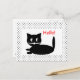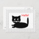 Design graphique d'un chat noir sur un arrière - plan blanc entouré d'un cadre de petits pois noirs sur un arrière - plan blanc.