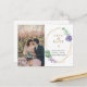 Faire-part de mariage avec des succulentes violettes aquarellées, un cadre géométrique doré et votre photo personnalisée. Trouvez des articles assortis dans notre boutique ou contactez-nous.