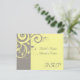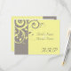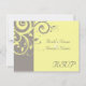 Carton de réponse pour correspondre à notre invitation de mariage à tourbillon inversé jaune et gris, avec un fond élégant et doux à motif de feuilles en volute. Personnalisez en ligne avec vos détails de mariage.