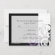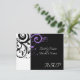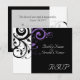 Carton de réponse pour aller avec notre faire-part de mariage noir et blanc avec tourbillon inversé violet, avec un fond audacieux de feuilles en volute. Personnalisez en ligne avec vos détails de mariage.