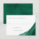 Cartons de réponse à l'aquarelle de couleur vert émeraude foncé, faisant partie de notre collection de papeterie de mariage moderne teintée par immersion. Caractérisés par des nuances de vert émeraude riche, rappelant les forêts et les montagnes vertes, appliquées en coups de pinceau picturaux de lavis à l'aquarelle riche, assortis à un texte classique simple.