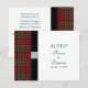 Cette carte-réponse a été créée en utilisant le motif tartan Royal Stuart (Royal Stewart). Ce tartan a commencé sa vie en tant que tartan 'Royal' - celui de la Maison Royale de Stuart - le tartan personnel du monarque régnant. Au fil des ans, il est devenu si populaire et largement porté par tous qu'il est maintenant considéré comme un tartan Universel (ce qui signifie qu'il peut être porté par quiconque n'a pas de tartan de clan). Si vous êtes intéressé par notre papeterie de mariage tartan conçue avec un tartan différent, veuillez cliquer sur "wasootch" ci-dessous, puis nous envoyer un message via le lien "envoyer un message" situé sur la barre latérale de notre boutique Zazzle. Veuillez indiquer les détails du tartan dans votre message. La couleur du texte et du fond de cette carte-réponse est entièrement personnalisable. Vous pouvez modifier le texte en utilisant l'option de personnalisation. Pour des modifications plus importantes, telles que la police, la couleur de la police, la disposition/placement du texte ou la couleur de fond, utilisez l'option de personnalisation. Reconnectez-vous avec vos racines écossaises avec un thème de mariage tartan. Cette carte-réponse serait également parfaite pour un anniversaire, un anniversaire spécial ou toute autre occasion spéciale que vous souhaitez célébrer avec un thème tartan. Tout ce que vous avez à faire est de modifier le texte. De plus, cette carte est parfaitement dimensionnée pour être utilisée comme carte