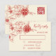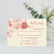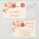 Cette carte de réponse de mariage chinoise moderne présente une branche d'art en ligne de magnolia rouge et un symbole de double bonheur rouge sur un fond crème. Avec un code QR scannable pour le site web de votre mariage.
