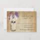 Carte de réponse parfaite pour un mariage de style campagnard ou peut-être que vous aimez simplement les Pots Mason ! Un fond rustique antique avec le pot Mason suspendu et des fleurs sauvages dans des tons de fleurs de marguerite violettes et blanches/jaunes. Si vous avez des questions sur ce design ou si vous souhaitez une modification de couleur, veuillez m'envoyer un e-mail à paula@labellarue.com Vérifiez également les Cartes de RSVP, de RÉCEPTION et de PLACEMENT DES INVITÉS pour assortir !