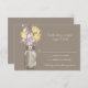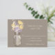 Carte de réponse RSVP parfaite pour un mariage de style champêtre ou peut-être que vous aimez simplement les pots Mason ! Pot Mason suspendu à un crochet rempli de fleurs sauvages champêtres. Un fond brun chaud contraste avec le pot Mason suspendu et les couleurs des fleurs sauvages Jaunes Tournesol (7403) et Lavandes. Si vous avez des questions sur ce design ou si vous souhaitez une modification de couleur, veuillez m'envoyer un e-mail à paula@labellarue.com. Vérifiez également les cartes de RSVP, de RÉCEPTION et de PLACEMENT DES INVITÉS pour assortir !