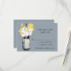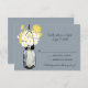 Carte de réponse RSVP parfaite pour un mariage de style champêtre ou peut-être que vous aimez simplement les pots Mason ! Pot Mason suspendu à un crochet rempli de fleurs sauvages champêtres. Un fond gris frais (04:2:9) qui contraste avec les couleurs du pot Mason suspendu et des fleurs sauvages, des marguerites jaunes et blanches. Si vous avez des questions sur ce design ou si vous souhaitez une modification de couleur, veuillez m'envoyer un courriel à paula@labellarue.com. Vérifiez également les cartes de RSVP, de RÉCEPTION et de PLACEMENT DES INVITÉS pour assortir !