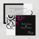 Petite carte de réponse à insérer pour accompagner notre invitation de mariage tourbillon magenta envers noir et blanc, avec un motif graphique audacieux de feuilles en volute sur fond. Personnalisez en ligne avec les détails de votre mariage.