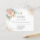 Un fond blanc orné de verdure d'eucalyptus, d'une rose rose poudré et or rose, de feuilles dorées et de gouttes de paillettes dorées.