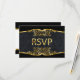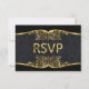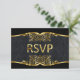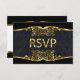 Invitation de mariage en damas noir et or avec carton de réponse.