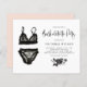 Invitez vos invités à votre événement avec ce carton d'invitation personnalisable pour une soirée de bachelorette. Il présente des illustrations aquarelles de lingerie en dentelle noire et de fleurs noires avec une calligraphie moderne. Personnalisez en ajoutant les noms, la date, l'heure, le lieu et d'autres détails de l'événement. Cette soirée lingerie noire est parfaite pour n'importe quel thème de bachelorette.