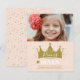 Un carton d'invitation de fête d'anniversaire de princesse girly mignon fantaisiste comportant une couronne d'or avec des étoiles scintillantes, une baguette rayée et un texte modifiable. Mettez en valeur le nom de votre petite princesse à l'intérieur de la couronne magique si vous préférez avec l'élément de baguette mobile pointant vers l'âge. Comprend un dos à motif coordonné. Cliquez sur modifier pour personnaliser l'image et le texte.