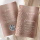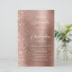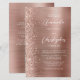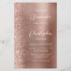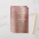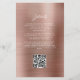 Le bord gauche de cette élégante invitation de mariage moderne présente une bordure scintillante de faux rose gold. Le texte personnalisable combine des polices de caractères écriture blanche, copperplate et italique sur un fond en métal brossé de faux rose gold. Le verso offre un espace pour les détails du mariage sur un fond en métal brossé rose gold, ainsi qu'un code QR que les invités peuvent scanner pour visiter votre site web et répondre, ce qui permet d'économiser le coût d'impression et d'envoi de cartes de réponse séparées.
