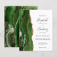 Le bord gauche de cette élégante invitation de mariage moderne présente une bordure d'agate aquarelle vert chasseur rehaussée de paillettes dorées fausses. Le texte personnalisable combine des polices écriture manuscrite, copperplate et italique en gris charbon sur fond blanc. Le verso présente un motif agate vert et or assorti. REMARQUE : les enveloppes ne sont pas automatiquement incluses avec ces invitations économiques, alors n'oubliez pas de choisir l'option "enveloppes blanches vierges" !