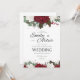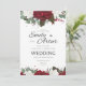 Carton d'invitation de mariage, invitation, carte de sauvegarde de date avec conception de bouquet vectoriel floral : jardin rouge, fleur de rose bourguignonne, pivoine blanche, branches d'eucalyptus ensemencées, amarante