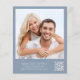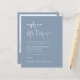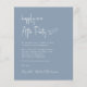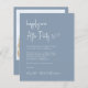 Invitation de réception de mariage abordable à poussière bleue avec "Happily Ever After Party" en écriture blanche chic, votre invitation en typographie serif blanche classique et vos noms dans une écriture de type signature. Au verso, téléchargez votre photo et entrez l'adresse de votre site web de mariage pour créer un code QR que vos invités peuvent scanner pour répondre en ligne et obtenir des détails supplémentaires.