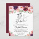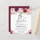 Invitation élégante, chic et économique pour une fête d'anniversaire de 75 ans qui présente "75 & Fabulous" dans un script stylisé et des bouquets aquarelles de fleurs rouges de Bourgogne, roses blush et fleurs violettes avec une verdure vert sauge clair.