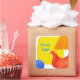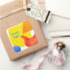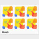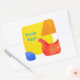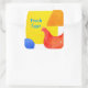 Un autocollant carré coloré accrocheur avec des couleurs et des formes audacieuses avec un poulet rouge, un triangle orange, un carré jaune et un cercle bleu royal peint à l'aquarelle. Vous pouvez customiser le texte en fonction de vos besoins.