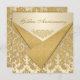 Ce carton d'invitation pour un 50e anniversaire de mariage, d'une élégante et sophistiquée couleur taupe et or avec un motif de brocart en damassé et des rabats avant or scintillant à l'aspect métallisé imprimés, présente une ornementation dorée sur le devant et un lustre de salle de bal dans les tons blanc cassé au verso. Cela constituerait une déclaration élégante pour le couple célébrant 50 ans de mariage. Je suggère d'utiliser du papier nacré perle ou du papier satiné de base. Si vous avez besoin d'articles assortis, veuillez envoyer votre demande par courriel à niteowlstudio@gmail.com.