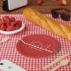 Plaques de papier avec un rouge et blanc avec un design minimal pour la Saint-Valentin. Tout le texte peut être customisé.