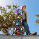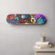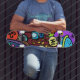 Ce jeu de skateboard amusant est doté d'un petit robot de dessin animé bleu debout sous une planète annelée saluant. Un skateboard coloré qui va certainement faire tourner la tête et impressionner les autres planteurs.