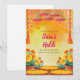 Ce modèle d'invitations DIY Haldi Dholki ou invitations Pithi, une invitation fusion dans l'élégance traditionnelle, est complété par des fleurs et des feuilles, parfait pour vos célébrations de cérémonie Haldi.