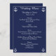 Cartons d'invitation personnalisés de menu de mariage nautique bleu marine avec texte personnalisable