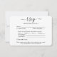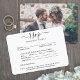 Partagez l'une de vos photos de fiançailles ou de mariage avec ces cartes de réponse élégantes et polyvalentes. L'image et tout le texte sont faciles à personnaliser. (CONSEIL DE PLACEMENT DE L'IMAGE : un moyen simple de centrer une photo exactement comme vous le souhaitez est de la rogner avant de la télécharger sur le site Web de Zazzle.) La carte comprend des choix de repas, des allergies alimentaires, une demande de chanson et la possibilité de répondre en ligne via un site Web ou une adresse e-mail. Toutes les informations de réponse peuvent être personnalisées ou supprimées. Le design noir et blanc présente une typographie minimaliste moderne, une calligraphie manuscrite et 1 photo de votre choix. Cette carte est un moyen élégant de demander à vos invités de mariage de bien vouloir répondre à votre célébration prochaine.