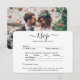 Partagez une de vos photos de fiançailles ou de mariage avec ces cartes RSVP élégantes et polyvalentes. Image et tout le texte sont simples à customiser. (CONSEIL EN MATIÈRE DE PLACEMENT D'IMAGE : Une façon simple de centrer une photo exactement comment vous voulez est de la rogner avant de la télécharger sur le site Zazzle.) La carte comprend les choix de repas, les allergies alimentaires, la demande de chant et l'option de répondre en ligne par l'intermédiaire d'un site Web ou d'une adresse électronique. Toutes les informations de réponse peuvent être personnalisées ou supprimées. Le design noir et blanc présente une typographie minimaliste moderne, une calligraphie manuscrite et 1 photo de votre choix. Cette carte est une façon élégante de demander aux invités mariages de répondre gentiment à votre prochaine célébration de la journée spéciale.
