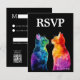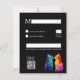 Voici la carte RSVP de la collection "Purrparfaitement Yours : A Rainbow Love Story", où le sentiment d'âme rencontre l'élégance ludique. Conçu pour le charme et la commodité, cette carte verticale donne le ton d’une célébration tendre, inclusive et délicieusement féline. 📅 Le recto comporte la légende en gras "RSVP", ainsi qu'une date de réponse claire, ce qui facilite la planification et la réponse dans les délais. Dans un décor noir épuré, l’illustration focale est une joie pure : deux chats à l’arc-en-ciel qui se regardent dans les yeux avec une curiosité affectueuse. Leur pose est douce mais intentionnelle : un moment de connexion en miroir, leurs queues en bandes de couleur formant un coeur subtil à la base, symbolisant l'amour sans limites. ✍️ Au verso, les invités trouveront un espace bien aménagé pour écrire leur nom, indiquer s’ils y assisteront, indiquer le nombre de participants et indiquer les préférences alimentaires ou les allergies. C’est pratique et personnel. Un code QR caché élégamment dans un coin permet des réponses numériques transparentes, ajoutant une touche moderne à un design fantaisiste. 💌 Cette carte RSVP est plus qu’un comptage, c’est un geste d’inclusion enveloppé dans une palette arc-en-ciel et des pattes tendres. Il murmure : "Ce mariage accueille toutes sortes d'amour, surtout celui qui ronronne."