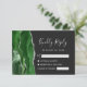 Le bord gauche de cette élégante carte d'enceinte RSVP de mariage moderne comporte une bordure d'aquarelle vert chasseur ornée d'une parties scintillant en faux argent. Le titre "Kindly Reply" apparaît en écriture manuscrite gris argenté, avec le texte personnalisable ci-dessous en police cuivre gris argenté sur un arrière - plan non noir. L'envers présente un design d'agate vert et argenté assorti.