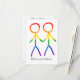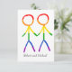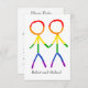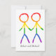 Cette carte RSVP présente un design simple et magnifique à inclure dans vos invitations de mariage. Le graphique représente deux hommes, sous la forme d'élégantes figurines en bâton, se tenant la main. Les figures sont colorées dans un bel arc-en-ciel, symbolisant l'amour et la diversité. Cette carte est une façon merveilleuse d'apporter une touche cohérente et significative à votre papeterie tout en fournissant aux invités une façon claire et élégante de répondre. j