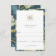 Elégant bleu ancien jardin anglais floral et feuillage motif textile, carte RSVP mariage. L'avant de la carte présente un monogramme décoratif délicat et un cadre motif. Le dos de la carte dispose d'un motif complet de motif de jardin anglais antique dans une jolie palette de bleu, vert et champagne.