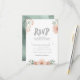 Une belle carte RSVP avec une police décorative unique et de délicats accents floraux dans des pastels doux allant du rose pâle au corail pâle. Reverse a un arrière - plan d'aquarelle frappant dans les tons assortis de vert sauge. Ces cartes tropicales sont parfaites pour l'été, la plage et les mariages tropicaux, anniversaires et autres événements. Recherchez ID654 pour voir d'autres produits dans cet ensemble de conceptions mariages.
