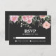 Cartons Réponse Aquarelle florale noir et rose vif Mariage
