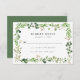 Cartes RSVP de mariage botanique élégantes, avec un cadre rectangle de feuillage aquarelle dans les tons de printemps et de vert mousse. Personnalisez les cartes RSVP de mariage vert boho avec votre date de réponse désirée et le libellé personnalisé accepte/décline. La carte RSVP botanique moderne a été conçue pour être coordonnée avec notre collection mariage Watercolor Greenery.